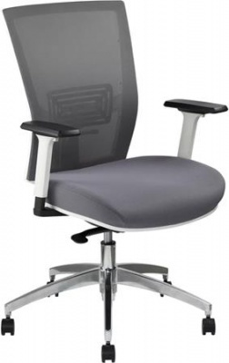 Irodai szék, karfás, hamuszürke szövet, feszített hálós háttámla, fehér váz, alumínium lábkereszt, MAYAH "Radar III"